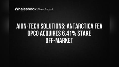 Antarctica FEV OPCO Limited ने Aion-Tech Solutions Limited चे तब्बल 33,54,942 इक्विटी शेअर्स विकत घेतले आहेत. ही खरेदी 6.41% हिस्सेदारी दर्शवते आणि हा व्यवहार 24 मार्च 2026 रोजी ऑफ-मार्केट पद्धतीने पूर्ण झाला. या व्यवहाराने Aion-Tech Solutions मध्ये एका नवीन मोठ्या शेअरहोल्डरची एंट्री झाली आहे.