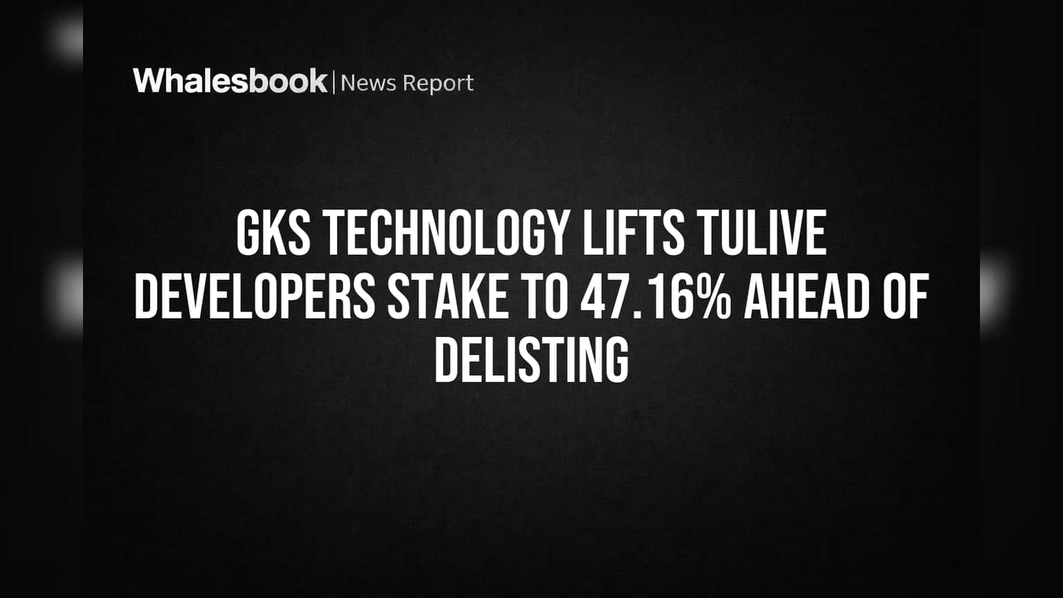 GKS Technology Park Private Limited ਨੇ ਆਪਣੇ ਸਹਿਯੋਗੀਆਂ (Persons Acting in Concert - PACs) ਨਾਲ ਮਿਲ ਕੇ Tulive Developers Limited ਦੇ 270,697 ਇਕੁਇਟੀ ਸ਼ੇਅਰ ਖਰੀਦੇ ਹਨ। ਇਹ ਖਰੀਦ ਕੁੱਲ ਵੋਟਿੰਗ ਪੂੰਜੀ ਦਾ 12.56% ਹੈ। ਇਸ ਖਰੀਦ ਤੋਂ ਬਾਅਦ, GKS Technology ਦਾ ਕੁੱਲ ਸ਼ੇਅਰ ਹੋਲਡਿੰਗ 1,016,064 ਸ਼ੇਅਰ ਹੋ ਗਿਆ ਹੈ, ਜੋ ਕਿ ਕੰਪਨੀ ਦੀ ਕੁੱਲ ਵੋਟਿੰਗ ਪੂੰਜੀ ਦਾ 47.16% ਬਣਦਾ ਹੈ।