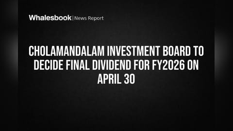 Cholamandalam Investment and Finance Company Limited తమ బోర్డు ఆఫ్ డైరెక్టర్స్ ఏప్రిల్ 30, 2026 న సమావేశం అవుతాయని ప్రకటించింది. ఈ సమావేశంలో ప్రధాన అజెండా, ఆర్థిక సంవత్సరం 2026 (మార్చి 31, 2026న ముగిసిన)కు గాను ఫైనల్ డివిడెండ్ ను సిఫార్సు చేయడం.