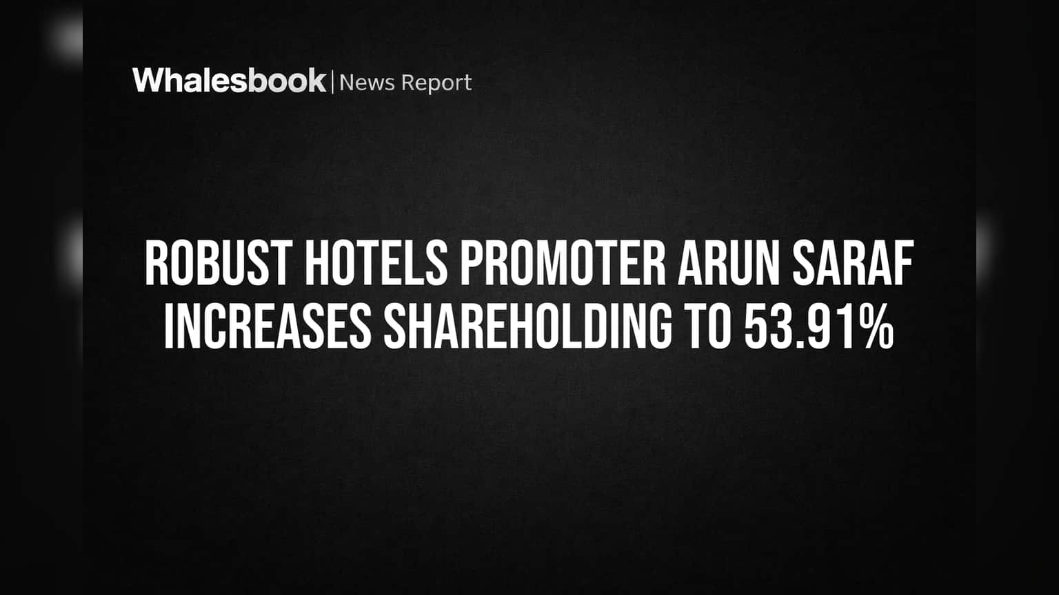 Arun Kumar Saraf సుమారు 20,26,520 ఈక్విటీ షేర్లను స్వీకరించనున్నారు. ఇది Robust Hotels మూలధనంలో దాదాపు 11.7196% వాటాకు సమానం. ప్రస్తుతం 42.19% ఉన్న ప్రమోటర్ల గ్రూప్ వాటా, ఈ లావాదేవీ తర్వాత 53.91% కి పెరుగుతుంది. ఈ ప్రక్రియ మార్చి 31, 2026 నాటికి పూర్తవుతుందని అంచనా.
