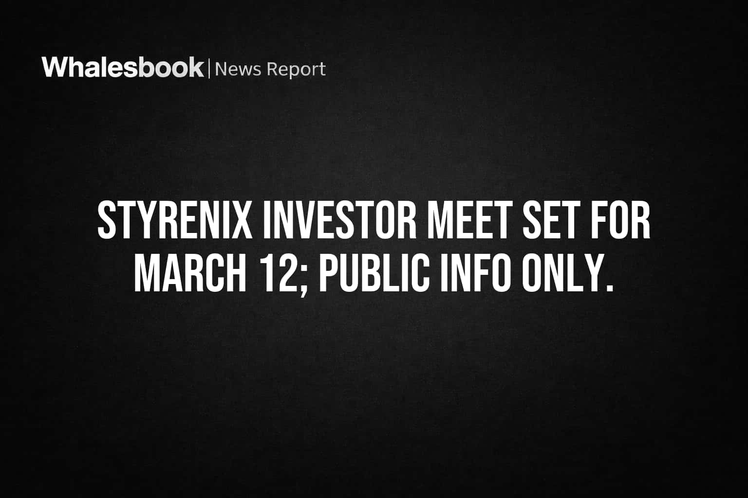 Styrenix Performance Materials Sets March 12 Investor Meeting; Focus on Public Data