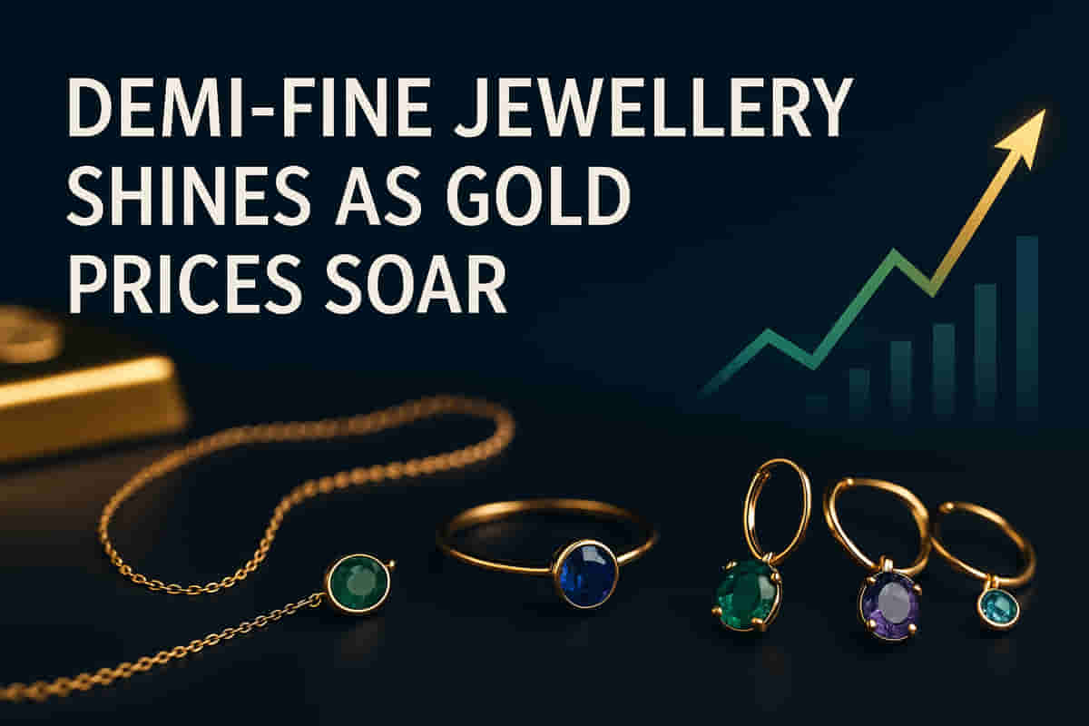 Soaring gold prices are shifting consumer preferences in India, pushing demi-fine jewelry into the spotlight as an accessible and fashionable alternative. Priced between ₹6,000 and ₹1 lakh, this category uses sterling silver, gold-plating, and semi-precious stones, offering a blend of luxury and affordability that contrasts with pure investment-grade gold. This trend represents a move from "jewelry as value storage" to "jewelry as fashion." Investor sentiment is increasingly positive, fueled by successful public offerings like BlueStone's and significant venture capital investments in startups such as Palmonas and Giva. Established players like Titan Company Limited (through Mia by Tanishq) and Kalyan Jewellers India Limited (through Candere) are actively expanding their offerings in this high-growth segment. Market projections indicate robust expansion for the global and Indian demi-fine jewelry markets.
