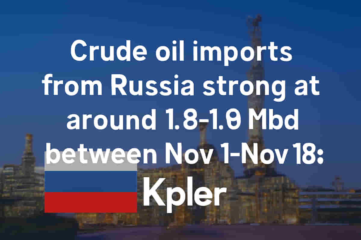 India imported an average of 1.9 million barrels of crude oil per day from Russia in November, representing a substantial 38% of its total oil imports. This volume is the highest recorded since June and the third-highest since the start of the calendar year. Prior to November, from July to October, India's daily crude oil imports from Russia averaged around 1.6 million barrels.