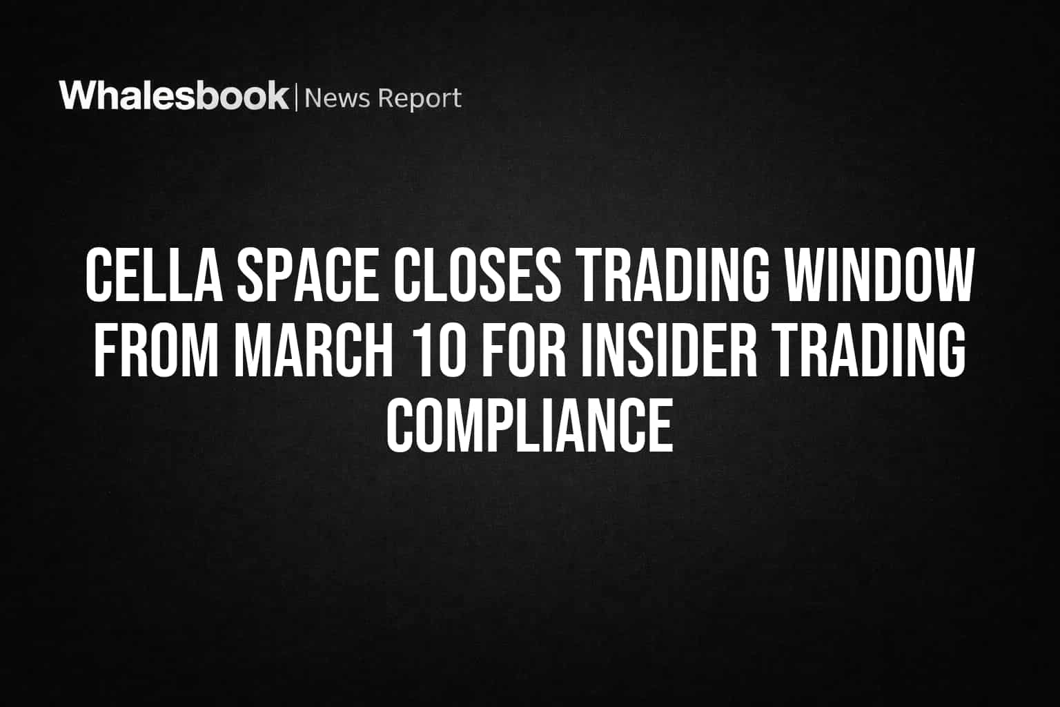 Cella Space Closes Trading Window From March 10 for Insider Trading Compliance