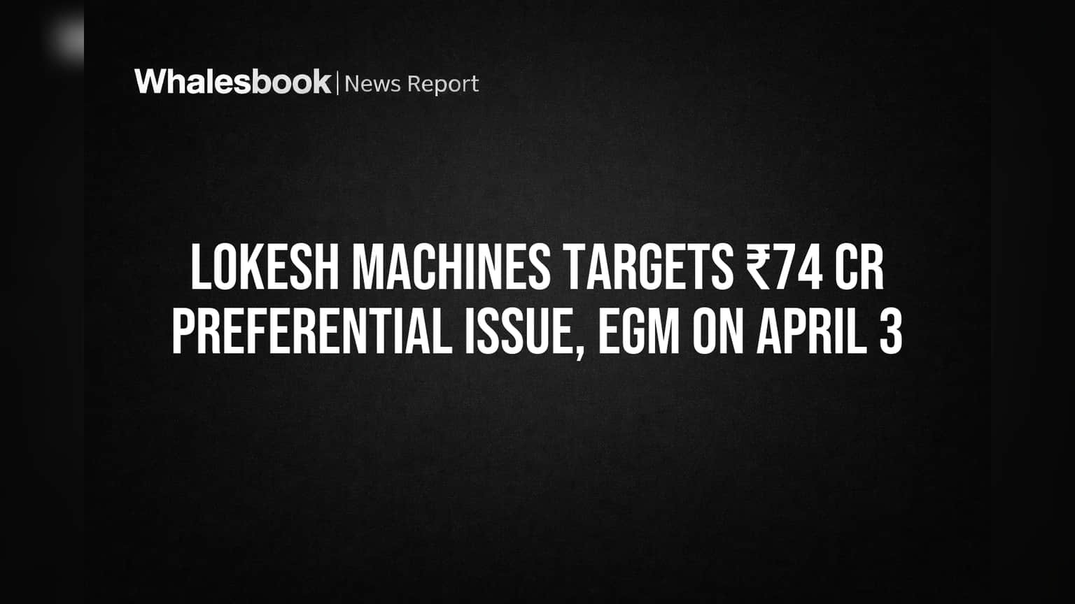 Lokesh Machines Limited announced on March 6, 2026, its proposal for a preferential issue. The company plans to raise approximately ₹74.10 crore by issuing up to 13,00,000 equity shares and up to 27,77,919 warrants.