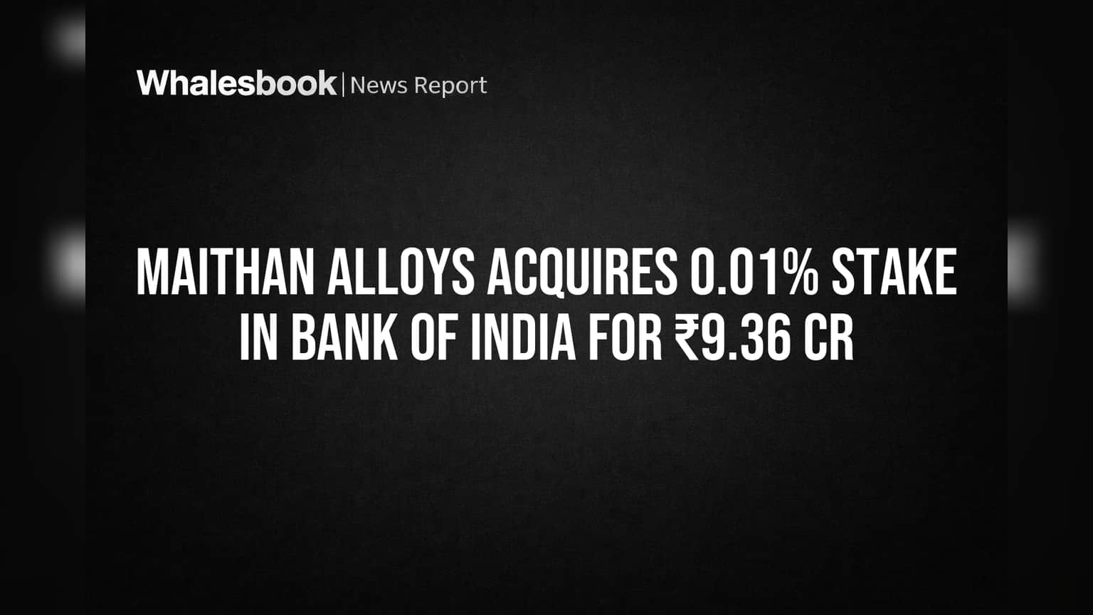 Maithan Alloys Limited announced it has completed the acquisition of a minor equity stake in Bank of India. The transaction involved the purchase of 602,688 equity shares, equal to 0.01% of the bank's total shareholding.