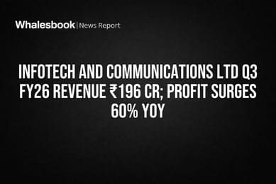 Infotech And Communications Ltd એ નાણાકીય વર્ષ 2026 ના ત્રીજા ક્વાર્ટર (Q3 FY26) અને પ્રથમ નવ મહિના (9M FY26) માટે શાનદાર નાણાકીય પરિણામો જાહેર કર્યા છે. Q3 FY26 માં કંપનીનો આવક (Income from Operations) 46.06% વધીને ₹196.00 કરોડ રહ્યો, જે ગત વર્ષના સમાન ગાળામાં ₹134.19 કરોડ હતો. કંપનીના Profit After Tax (PAT) માં પણ 60.64% નો જબરદસ્ત ઉછાળો આવ્યો છે, જે ₹6.49 કરોડ પર પહોંચ્યો છે, જ્યારે ગત વર્ષે તે ₹4.04 કરોડ હતો. બેઝિક Earnings Per Share (EPS) પણ ₹2.92 થી વધીને ₹4.01 થયો છે.
