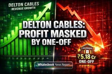 Dekho, Delton Cables ne FY26 ke third quarter (December tak) ka result nikala hai. Quarter mein toh revenue 42.2% bhaga aur ₹268.39 Crore ho gaya. Net profit bhi 21.0% badh kar ₹4.09 Crore ho gaya. Share price bhi thoda upar gaya hoga. Lekin bhai, is profit mein ₹5.18 Crore ka ek 'one-off' gain tha, jo puraane fire accident wale insurance claim settlement se mila tha. Agar ye paisa nahi aata na, toh company quarter mein ₹1.09 Crore ka loss dikhati! Matlab, asli kaam toh ghata mein chal raha tha.