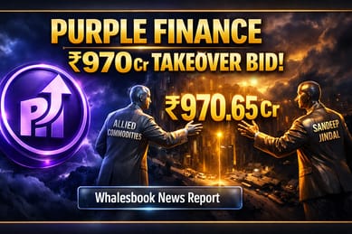 Allied Commodities Private Limited आणि Mr. Sandeep Jindal यांनी Purple Finance Limited मध्ये महत्त्वपूर्ण हिस्सेदारी मिळवण्यासाठी एक मोठी 'ओपन ऑफर' (Open Offer) जाहीर केली आहे. या ऑफर अंतर्गत, ते ₹55 प्रति शेअर या दराने कंपनीचे 26% शेअर्स विकत घेणार आहेत, ज्याची एकूण किंमत सुमारे ₹970.65 कोटी इतकी आहे. हा प्रस्ताव रिझर्व्ह बँक ऑफ इंडिया (RBI) च्या मंजुरीवर अवलंबून आहे.