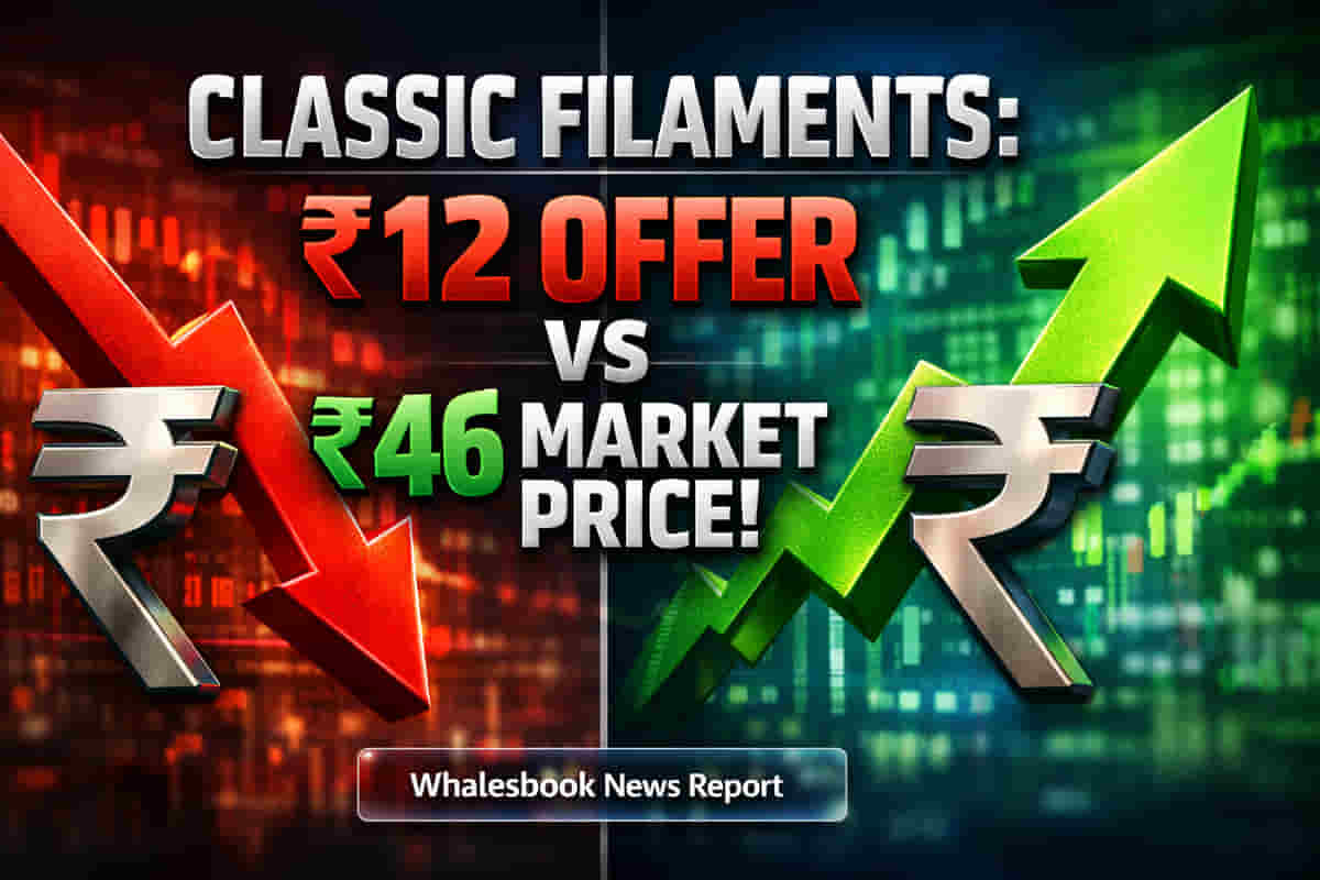 Classic Filaments Limited நிறுவனத்தை கையகப்படுத்த வரும் புதிய குழு, ஒரு ஷேருக்கு ₹12 என்ற விலையில் ஓப்பன் ஆஃபரை (Open Offer) அறிவித்துள்ளது. ஆனால், இதன் தற்போதைய சந்தை விலை (Market Price) ₹46 ஆக உள்ளது. இந்த அதிரடி விலை வித்தியாசத்தால், பங்குதாரர்கள் கடும்கோபத்தில் இருக்கிறார்கள். இந்த ஓப்பன் ஆஃபர் மூலம், acquirers 15,89,471 equity shares வரை, அதாவது 26.00% பங்குகளை வாங்க திட்டமிட்டுள்ளனர். இந்த சலுகை பிப்ரவரி 11 முதல் பிப்ரவரி 25, 2026 வரை நடைபெற உள்ளது.